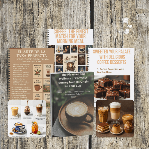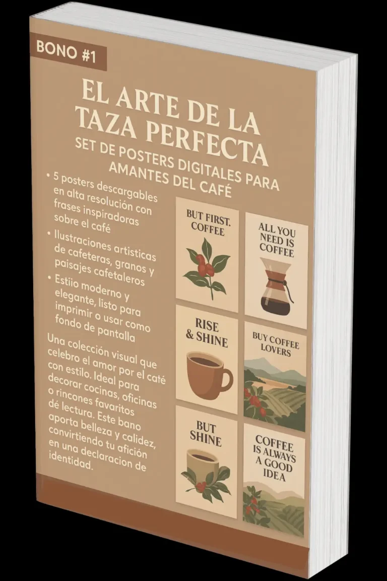 Bonus No.1: Digital Poster Set for Coffee Lovers. Includes: 5 downloadable posters with inspirational coffee quotes. Illustrations of coffee shops, baristas, and cozy coffee aesthetics. Modern and warm style, perfect for printing or using as screen backgrounds. Original price $5 USD, free with your purchase today.